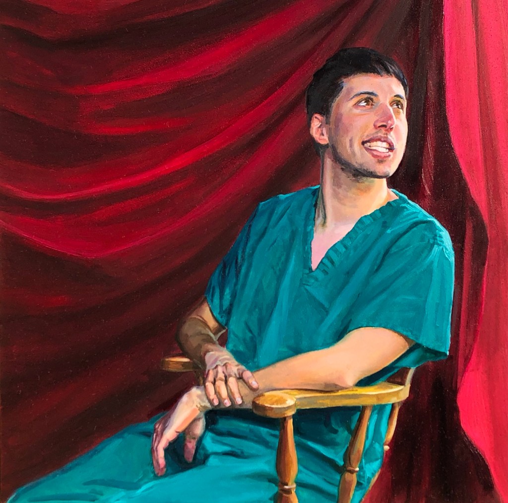 ‘I extend my profound gratitude to Paul, not just for the painting itself, but for the transformative process it entailed. For so long, I’ve held a belief, both consciously and unconsciously, that how I appeared when I stutter was marred by ugliness. The experience of having my stutter attentively observed, sketched, and then lovingly painted by Paul’s discerning eyes, as a valuable trait, has been profoundly counterintuitive. This journey, from my stutter being photographed to being immortalized on canvas as a symbol of beauty, has radically healed and reshaped my relationship with my speech. My gratitude to Paul for unveiling this perspective through his art is immeasurable.